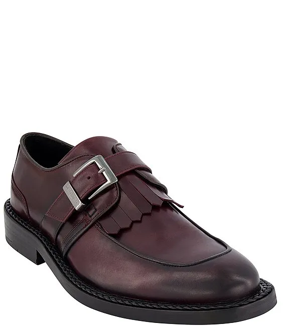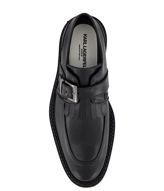 From KARL LAGERFELD PARIS, Men's White Label Monk Strap Moc Toe with Fringe Slip-Ons feature: