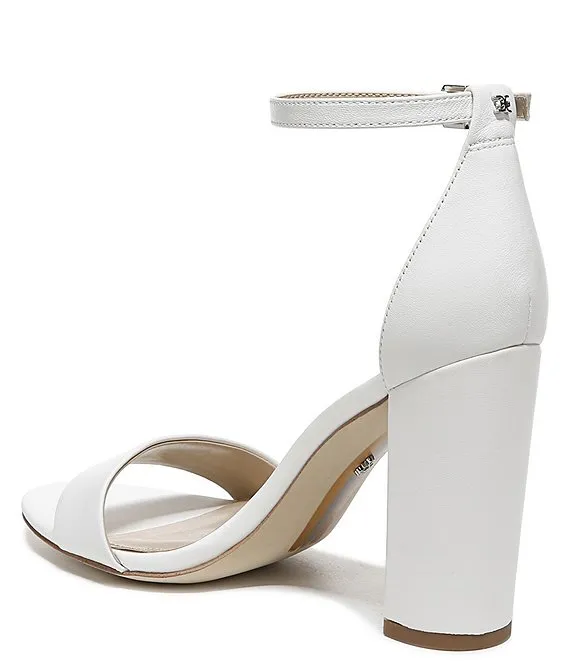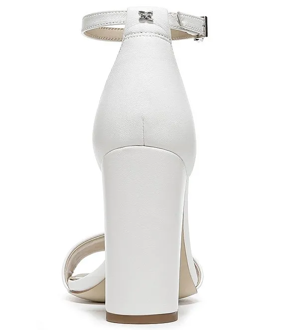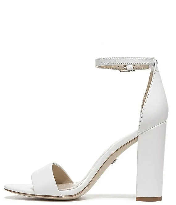 From Sam Edelman, the Yaro Leather Ankle Strap Block Heel Dress Sandals feature: