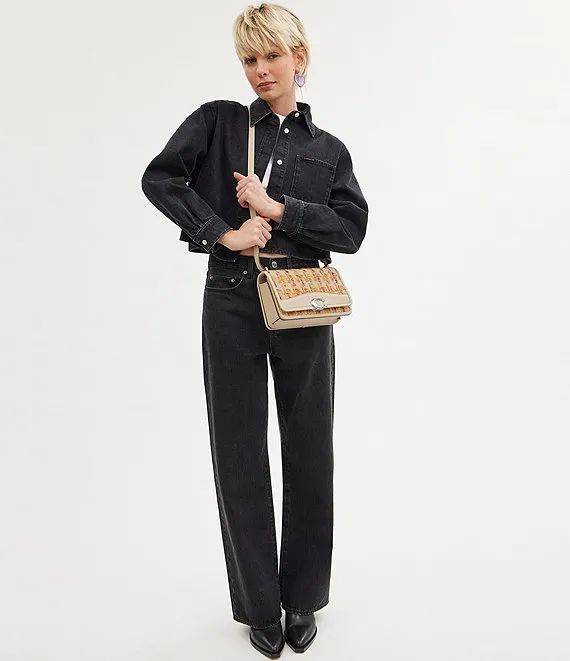 From COACH, the Bandit Tweed Shoulder Bag features: