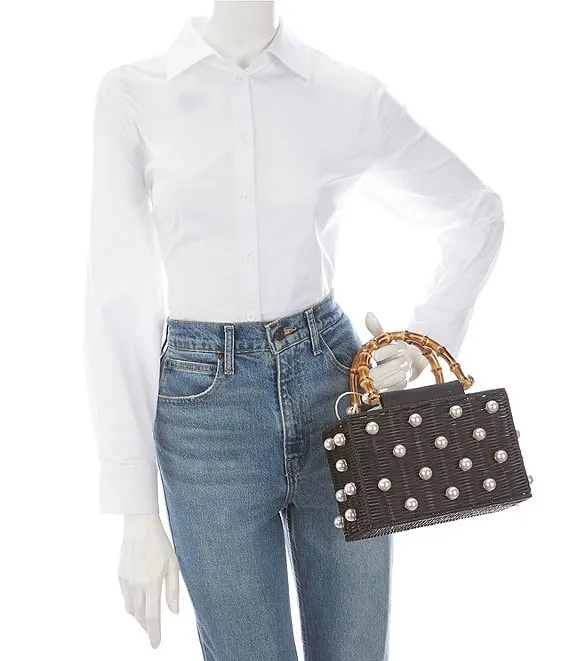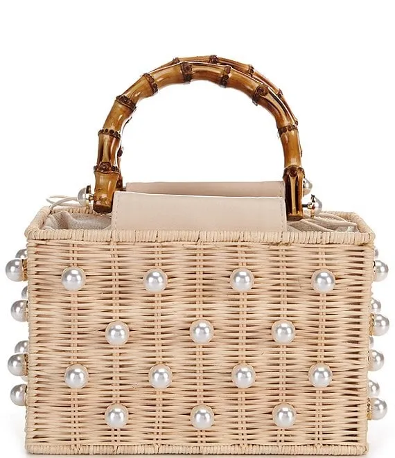 Btb Los Angeles Chloe Rattan Pearl Embellished Shoulder Bag