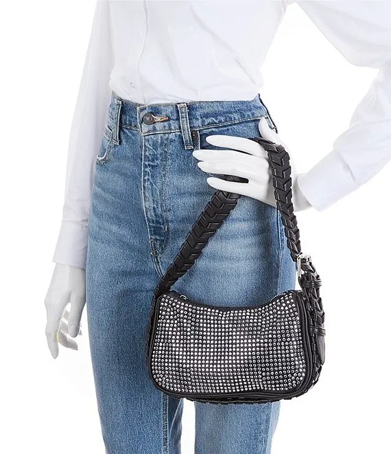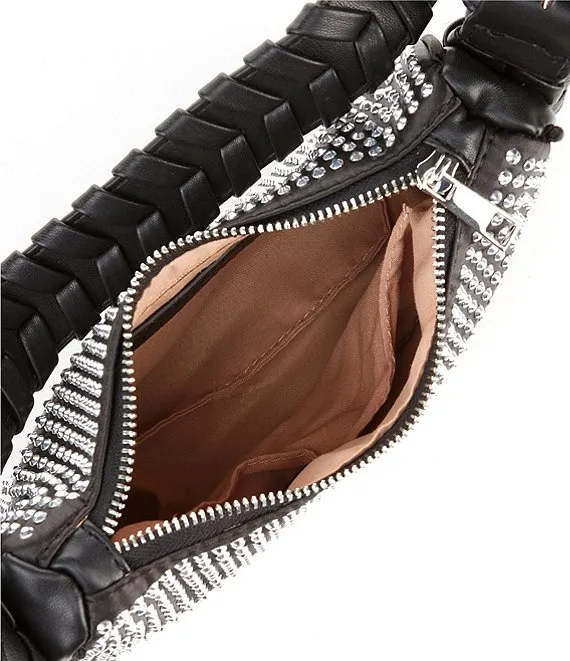 From Jules Kae, the Delilah Vegan Leather Crystal Shoulder Bag features: