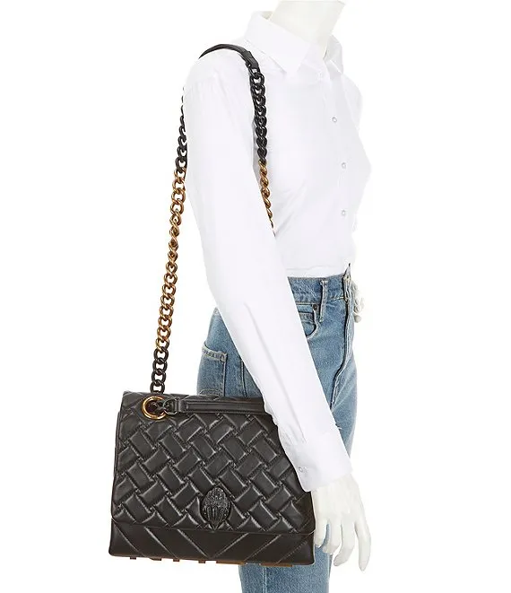 From Kurt Geiger London, the Large Quilted Kensington Long Flap Shoulder Bag features: