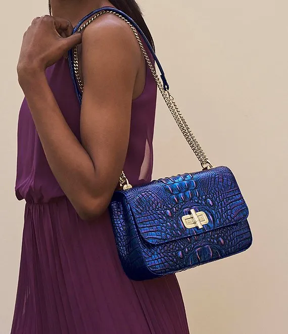 From the Melbourne Collection by BRAHMIN, the Rosalie Neptune Metallic Crossbody Bag features: