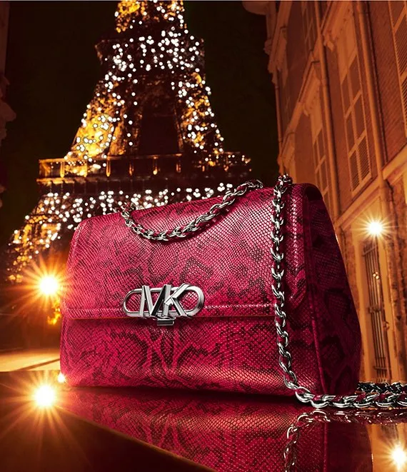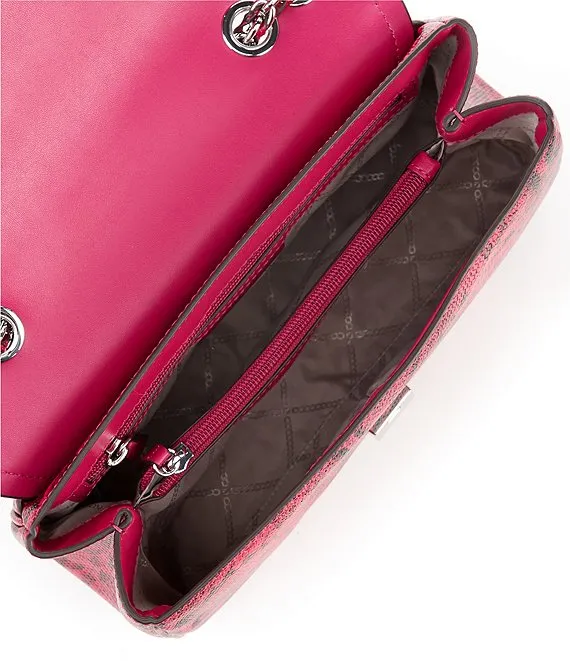 From Michael Kors, the Parker Extra-Large Snake Embossed Leather Shoulder Crossbody Bag features: