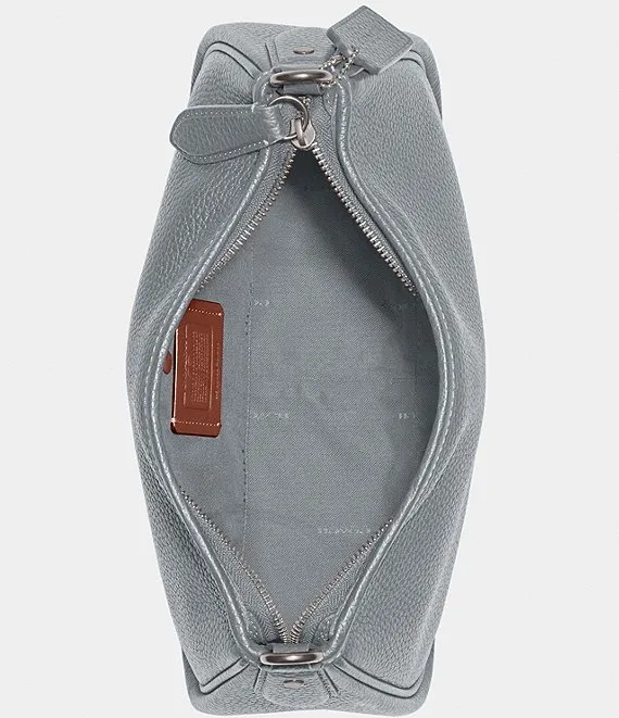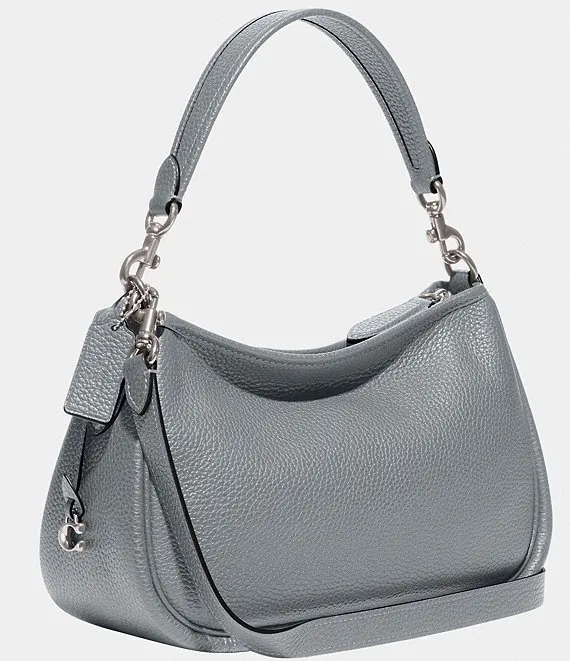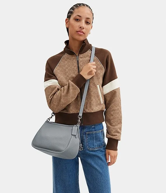 From COACH, the Silver Metal Cary Pebble Leather Crossbody Bag features: