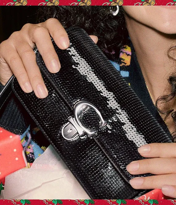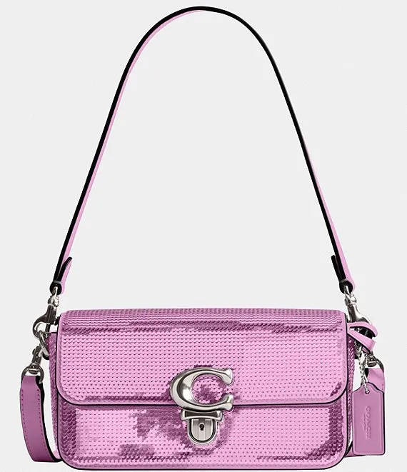 From COACH, the Studio Baguette Sequin Shoulder Crossbody Bag features: