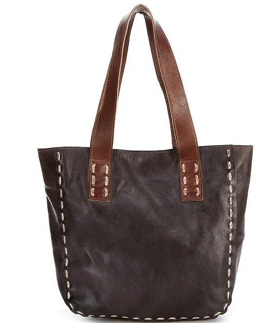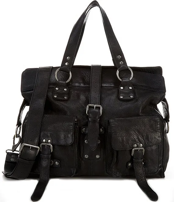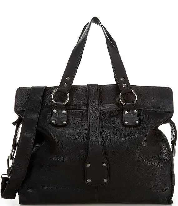 Stevie Black Teak Rustic Leather Shoulder Tote Bag