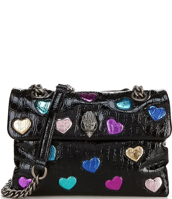 Large Multi Metallic Heart Soft Kensington Love Croc Shoulder Bag