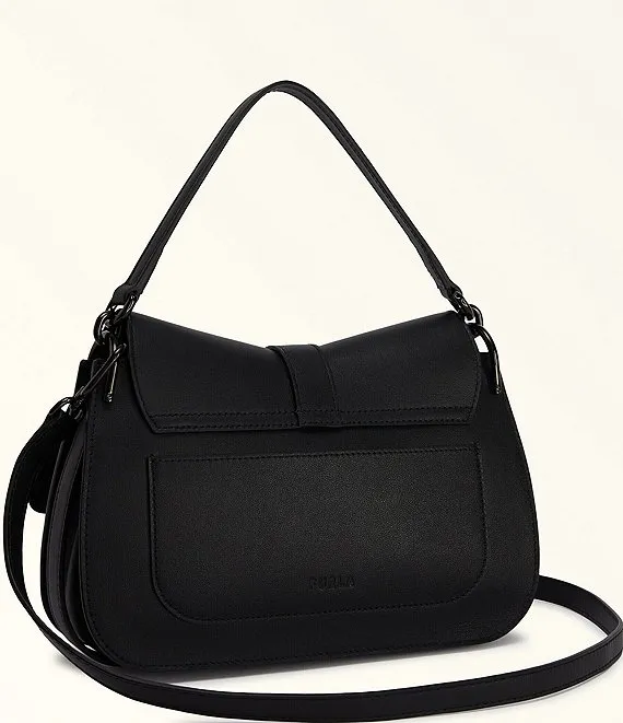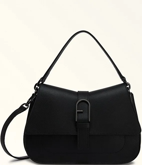 FURLA Flow Large Solid Black Top Handle Shoulder Bag