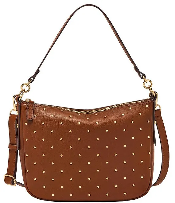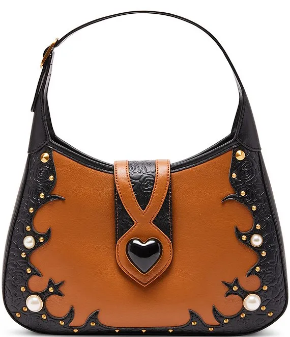 Morgan Leather Gold Studded Shoulder Hobo Bag