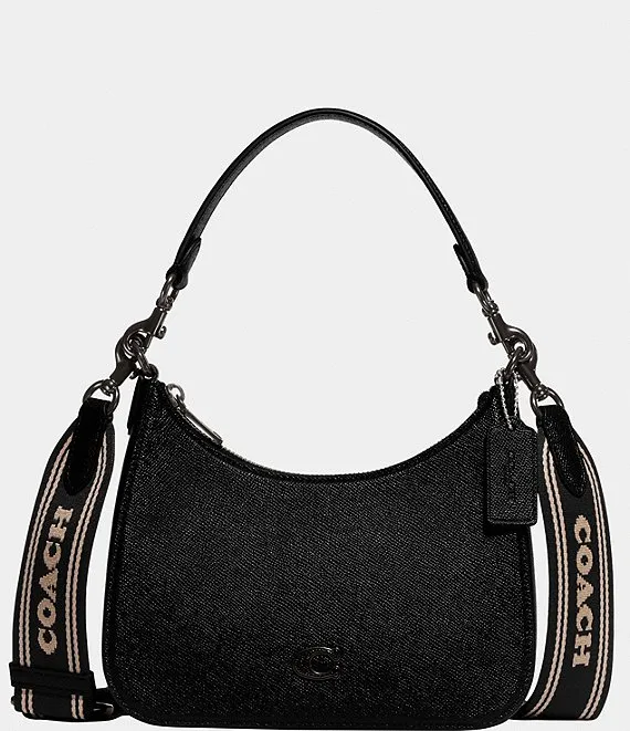 COACH Signature Coated Canvas Solid Black Crossbody Shoulder Bag