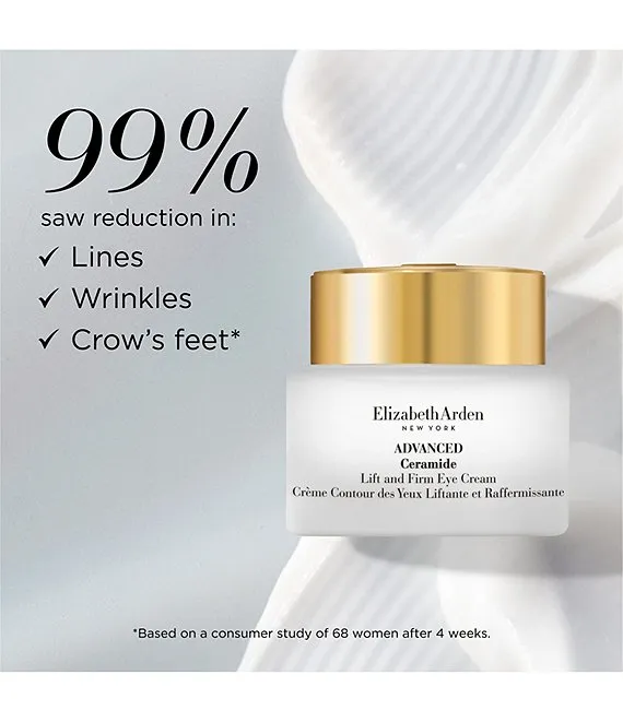 Advanced Ceramide Lift and Firm Eye Cream a fast absorbing, lightweight, silky cream now with 5x the Ceramide to replenish what skin needs but loses over time. Eye area is instantly moisturized, smoother, radiant and looks more awake.