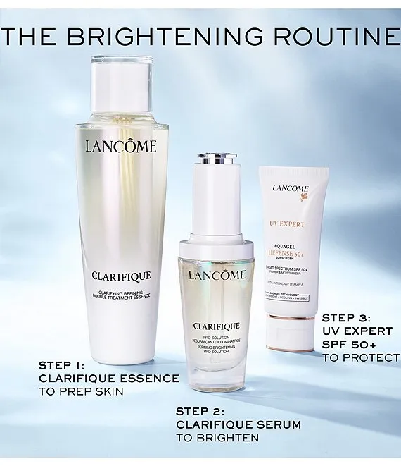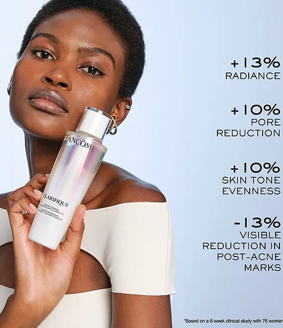 Clarifique Double Treatment Essence is the first step in your brightening skincare routine after cleansing to help improve radiance, skin tone evenness, and hydration. This bi-phase formula combines water and oil in two key phases. The first phase exfoliates & brightens, the second phase soothes skin.