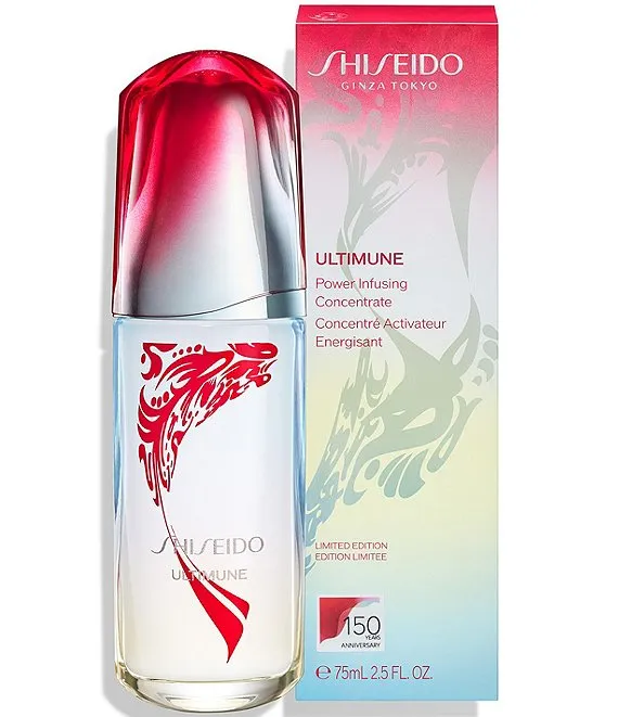For over 150 years, Shiseido has been sharing art, beauty, and science with the world. In celebration of this milestone, a specially designed Ultimune Power Infusing Concentrate Serum is available for a limited time. The design is inspired by kumadori, a makeup style of kabuki, and incorporates an arabesque pattern that has been used by Shiseido since 1920.
