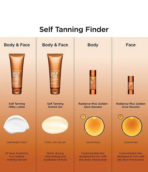 The Clarins Laboratories have combined their self tanning expertise with the hydrating benefits of Glycerin to create a long-lasting, sun-kissed, natural glow for face and body. The fresh, non-oily, quick-drying texture melts right in, so you can get dressed immediately after application.