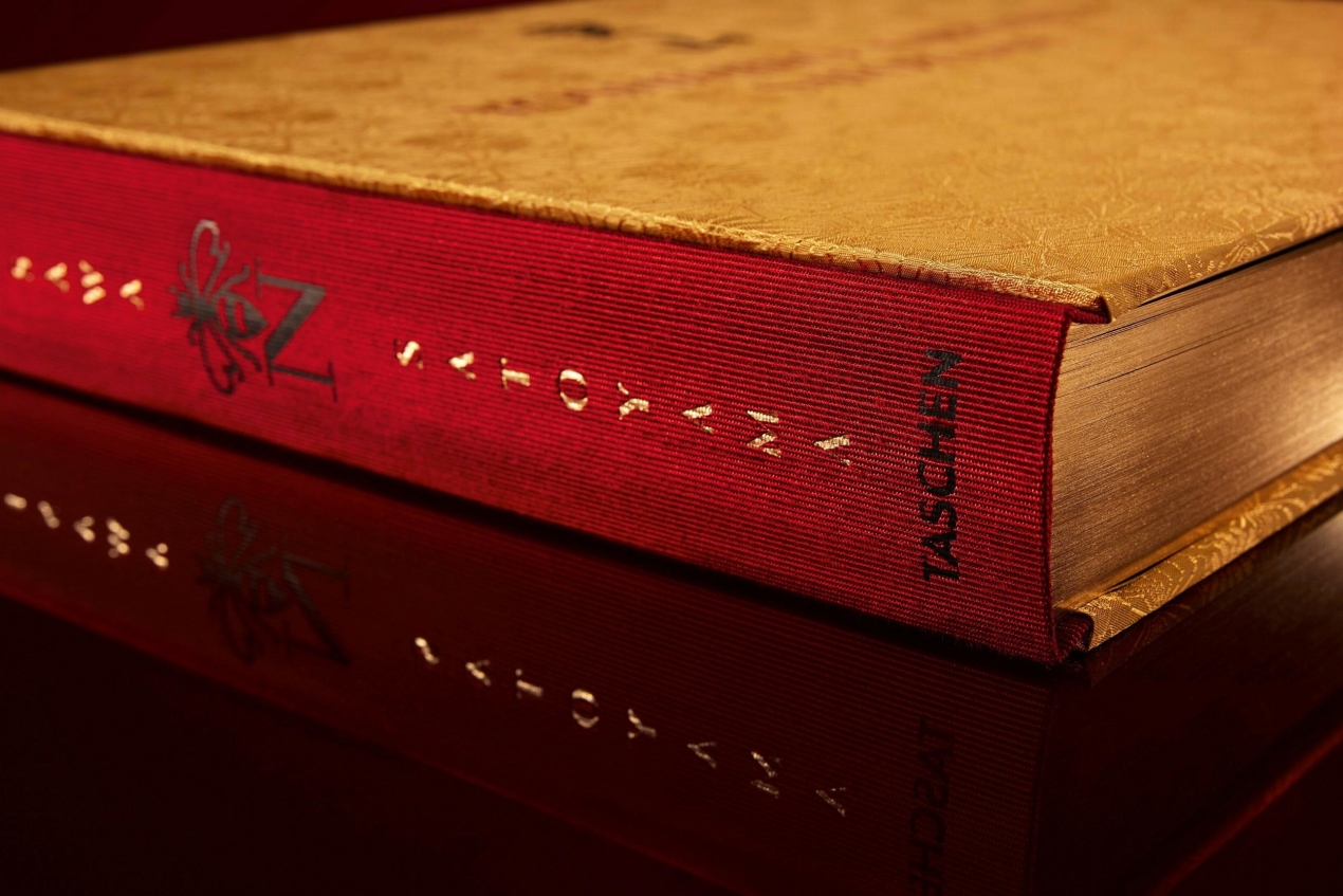 Edition of 1,000Hardcover, printed with 6 colors and varnish, bodonian binding in different Japanese fabrics, book block with gilded edges, 40 x 33 cm, 416 pages; in a gloss lacquered box, total weight 15 kg