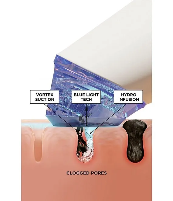 Instantly remove blackheads, oil, and gunk while infusing skin with clarifying salicylic & plumping hyaluronic acid + blue LED for clear, healthy skin. Like a vortex vacuum for your pores, get ready for your most satisfying cleanse ever as you reveal the gunk, oil, blackheads, pollution and makeup currently hiding in your skin. In less than two minutes, skin is left baby soft, plump, and clear with results so good your facialist will miss you.