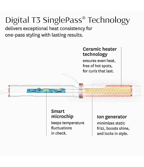 - Digital T3 SinglePass® Technology: Ensures exceptional heat consistency for one-pass styling with lasting results.