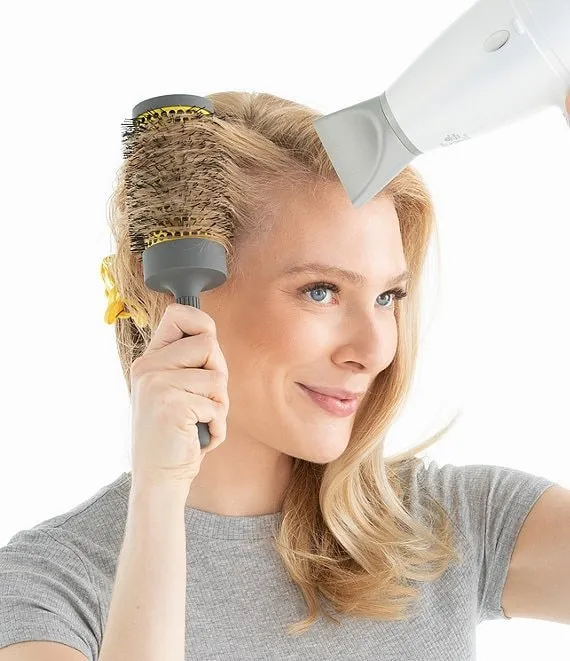 It's like a curling iron inside your brush. A large round brush with a 2.75" vented ceramic barrel that allows for maximum heat and airflow to lock in volume and curl for long-lasting styles.