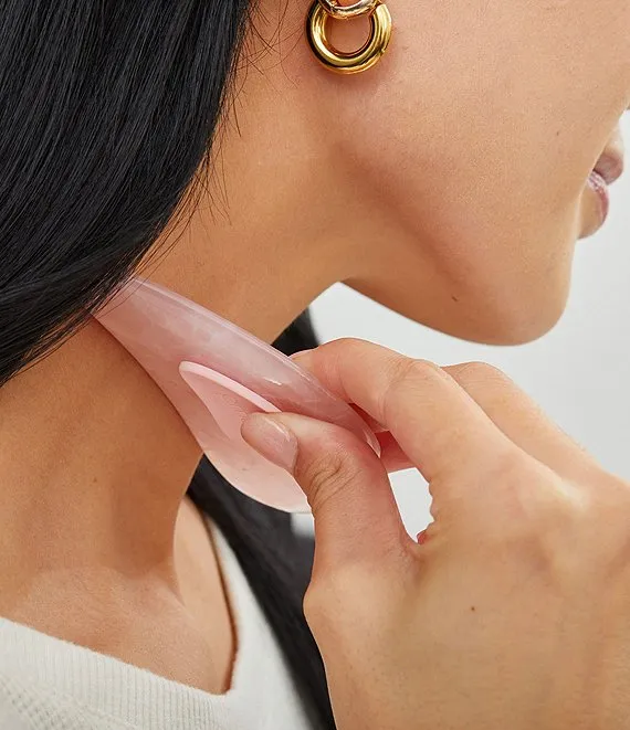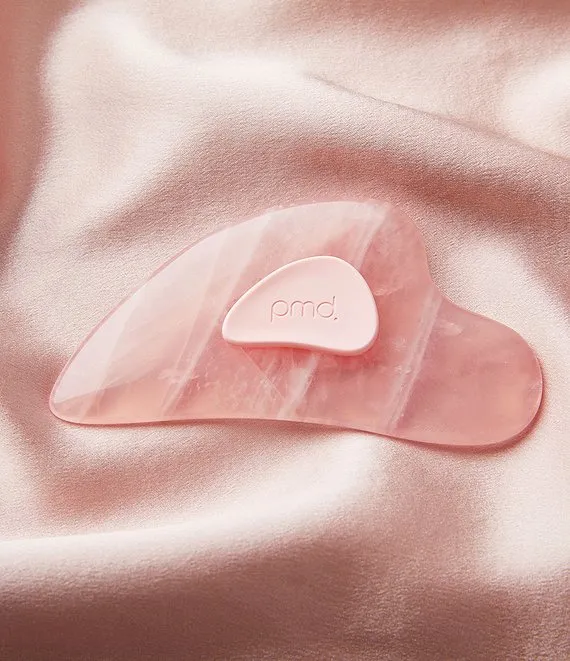The PMD Gua Sha RQ’s 5 unique edges, curves, and points are the perfect way to massage, sculpt, and depuff the face and body. The PMD Gua Sha RQ is inspired by ancient Chinese medicine that has been used for thousands of years to promote lymphatic drainage and circulation. Massaging assists in relaxing the muscles to relieve tension and inflammation. Sculpting and depuffing helps to move liquid lymph tissue and increase circulation. Rose Quartz stone consisting of elements including magnesium, iron, and oxygen, the rose quartz stone aids in reducing tension and inflammation. 5 edges, curves, and points, the custom shape assists in the most customizable massage experience. The unique silicone grip allows for a more comfortable hold. Uniquely designed with a larger stone to accommodate more usable edges to massage, sculpt, and depuff. Benefits