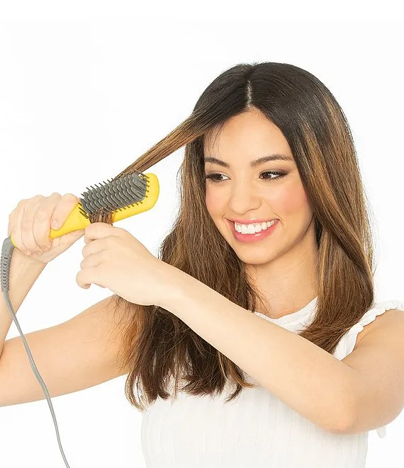 A compact and travel-friendly design combines the heat of a flat-iron with the structure of a paddle brush to create a smooth, frizz-free look in one easy step.