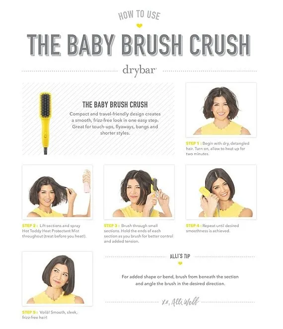 Begin with dry, detangled hair. Turn it on and allow it to heat up for 2 minutes. Slowly brush small sections of hair at a time from roots to ends. Repeat until desired smoothness is achieved.