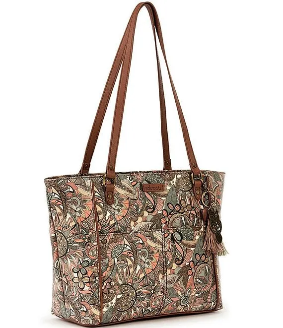 From Sakroots, the Artist Circle Metro Floral Coated Canvas Tote Bag features: