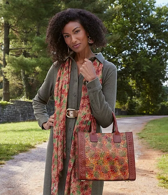 From Patricia Nash, the Burnished Rose Curry Leather Tote Bag features: