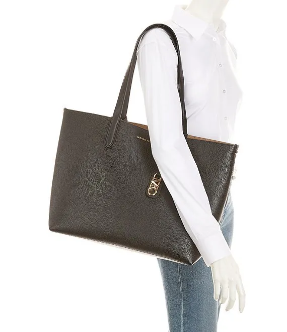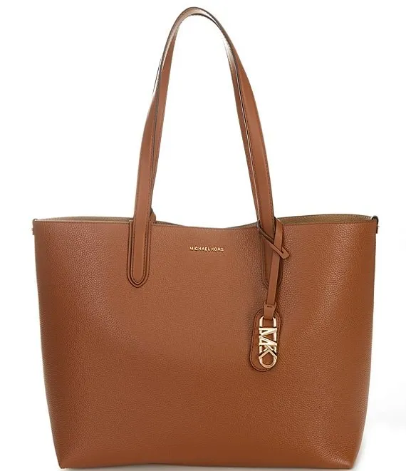 From Michael Kors, the Eliza Extra-Large Pebbled Leather Reversible Tote Bag features: