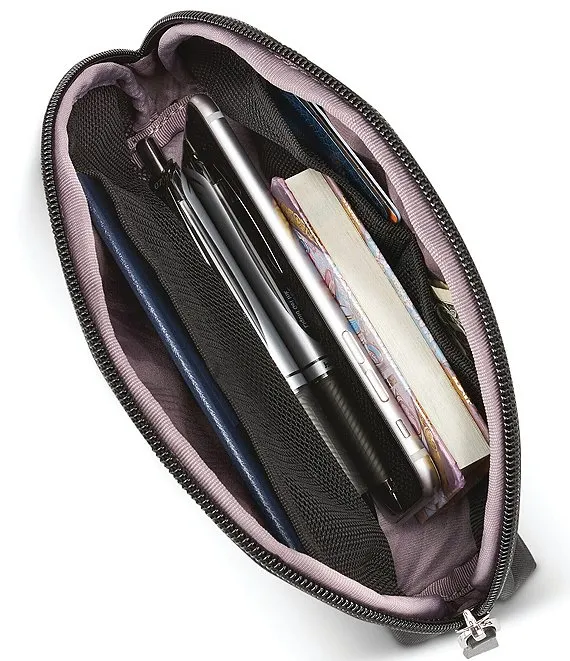 - Main zip compartment includes 2 accessory slip pockets and 1 full-length zip pocket