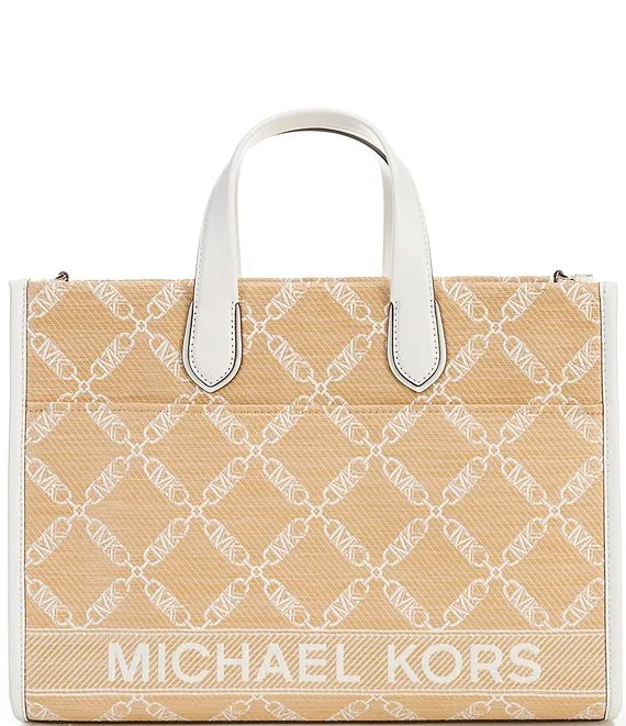 Gigi Empire Logo Raffia Jacquard Large Grab Tote Bag