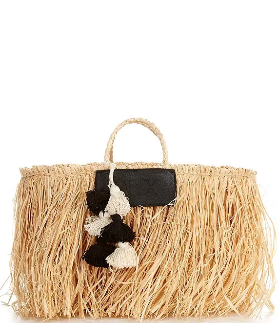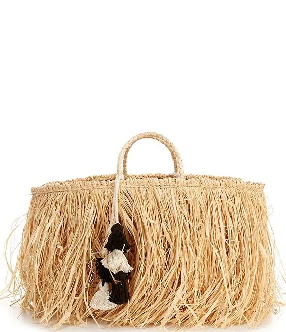 Logo Straw Fringe Tassel Raffia Basket Bag
