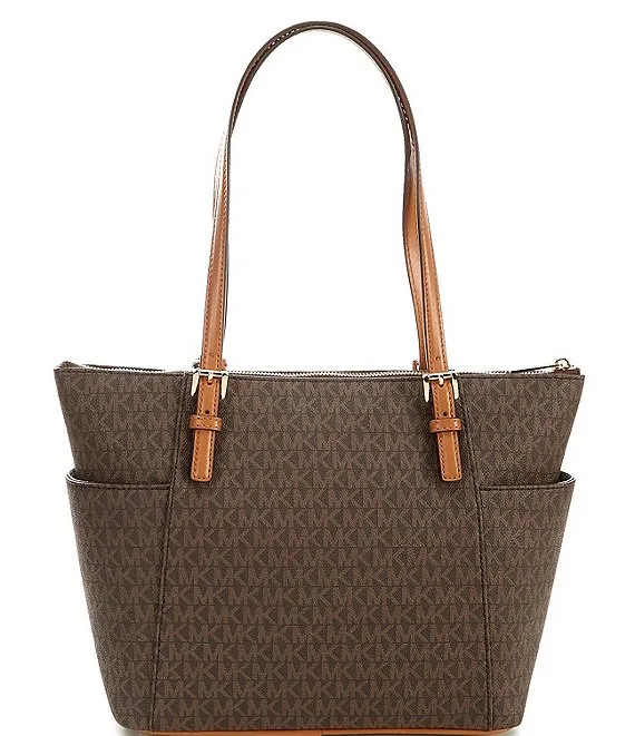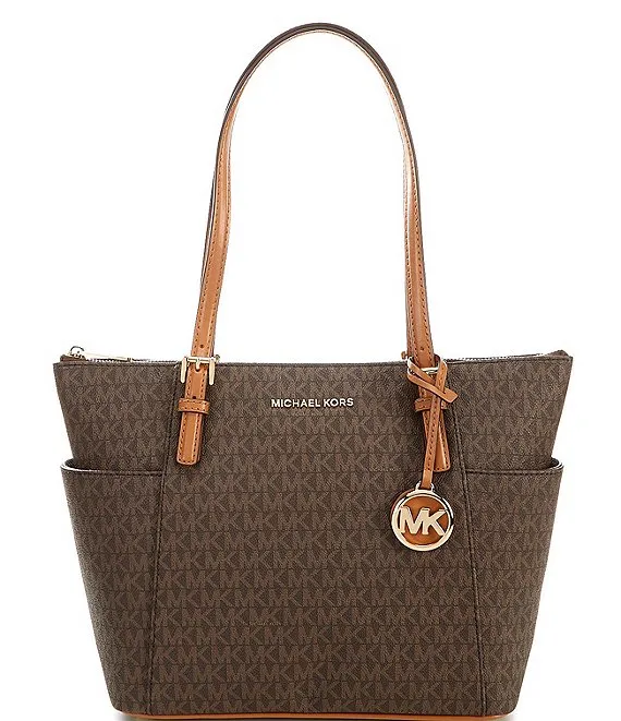 Jet Set East West Signature Logo And Logo Charm Top Zip Tote Bag