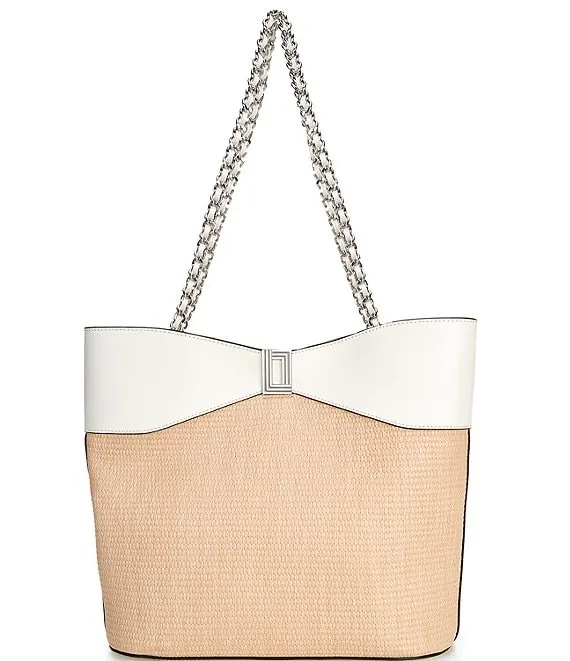 Btb Los Angeles Capri Straw Pearl Tote Bag