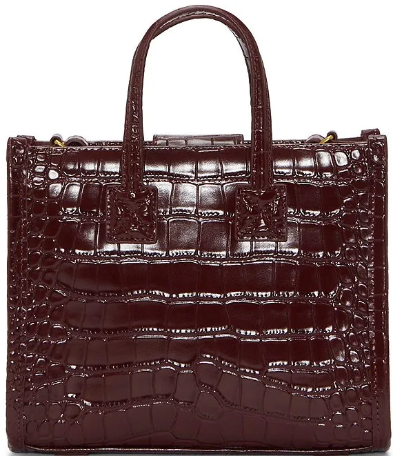 Small Croco Embossed Crossbody Tote Bag