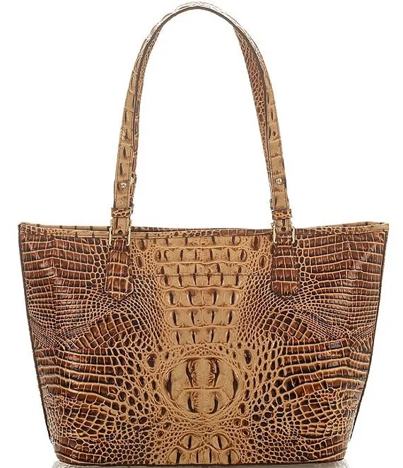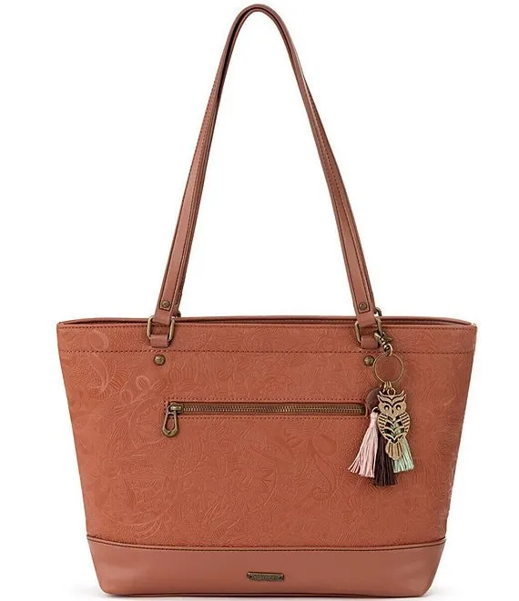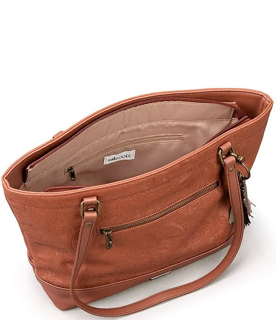 Arden Floral Embossed Tan Leather Tote Bag