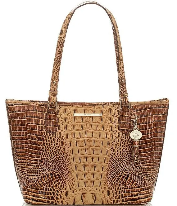 Ombre Melbourne Collection Leather Toasted Almond Medium Asher Tasseled Tote Bag