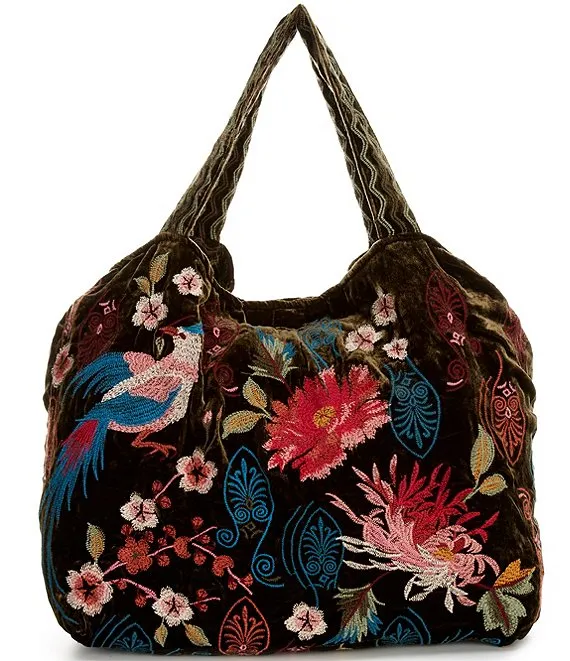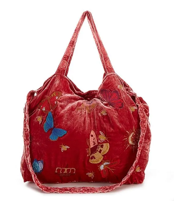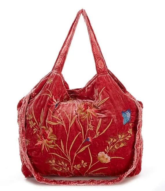 Aria Velvet Embroidery Tote Bag