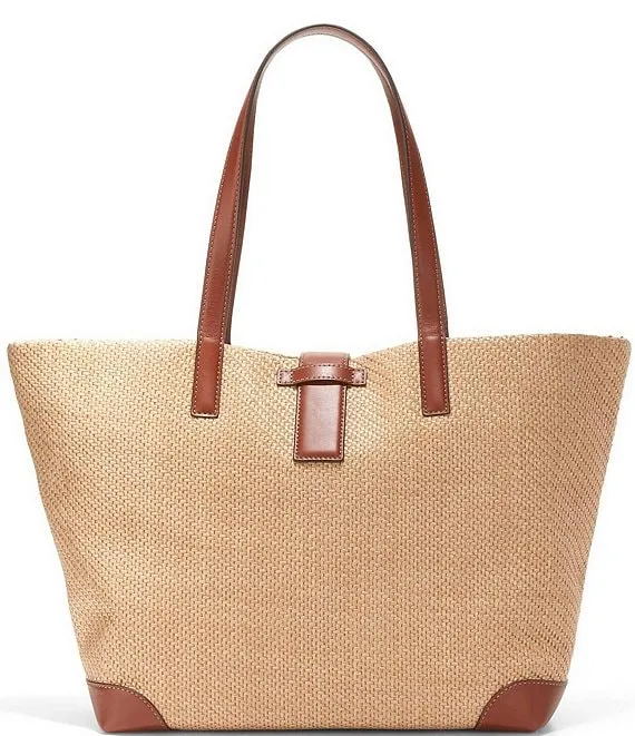 Lauren Ralph Lauren Whitney Crochet Straw Medium Tote Bag