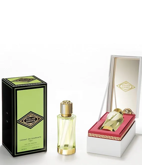 Cédrat de Diamante boasts the zest of Italian lemon, more efflorescent than traditional citrus aromas. Inspired by the Mediterranean, the perfume encompasses notes of pink grapefruit and natural woods. Envisioned by perfumer Marie Salamagne, who aims to embody artistry in craftsmanship in her scents, the vibrancy of Cédrat de Diamante is enhanced by aromatic cedarwood and vetiver.The Atelier Versace fragrance line consists of twelve unique eau de parfum scents. The sculptural glass bottle is engraved with the name of the fragrance, and the packaging features the Atelier Versace logo in the interior mirror.