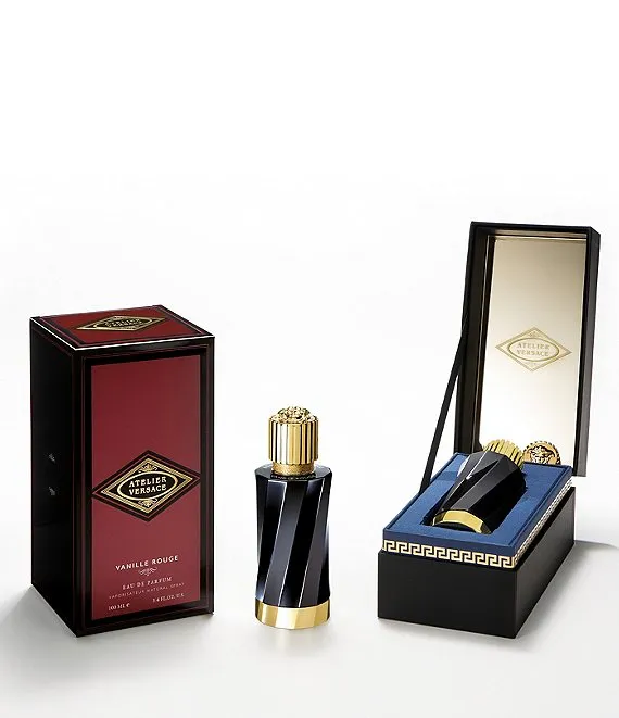 Vanille Rouge encompasses the Madagascar vanilla, adding a hint of pralines. The sweet tones are accompanied by a powdery musk accord. The powerful fragrance contains an unexpected rose note. Vanille Rouge was designed by Jordi Fernandez, who draws inspiration from the intricacies of Middle Eastern traditional scents. The Atelier Versace fragrance line consists of twelve unique eau de parfum scents. The sculptural glass bottle is engraved with the name of the fragrance, and the packaging features the Atelier Versace logo in the interior mirror.