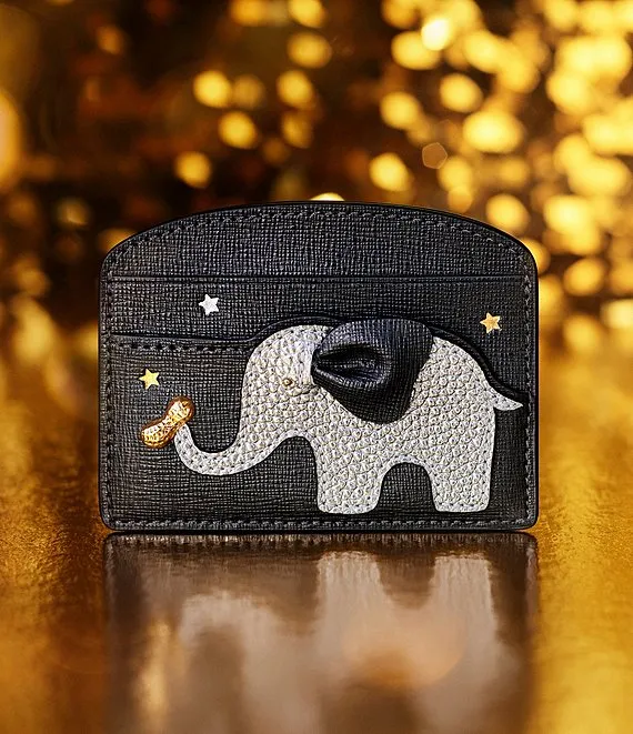From kate spade new york, Ellie Elephant Embellished Saffiano Leather Card Holder features: