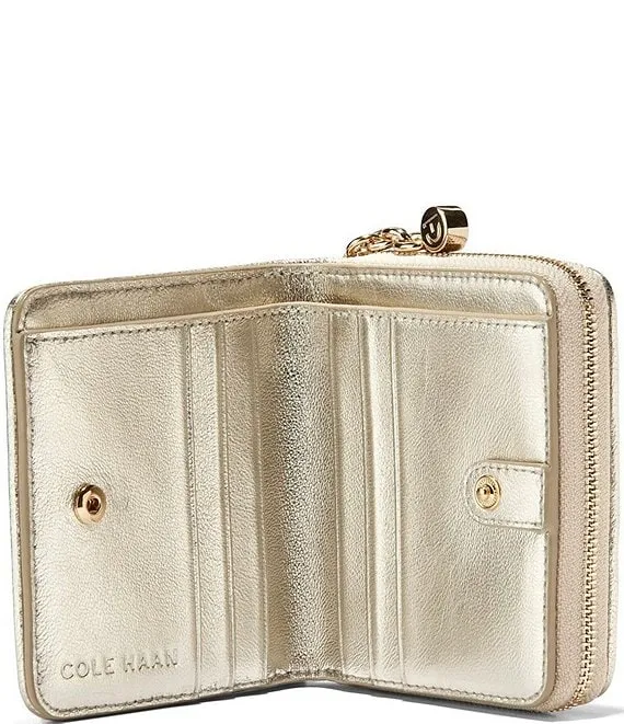 From Cole Haan, the Essential Zip Woven Wallet features: