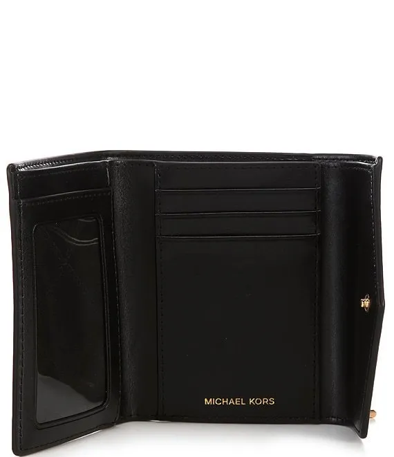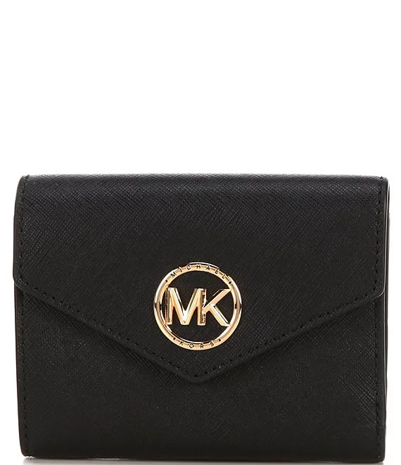 From Michael Kors, the Greenwich Medium Envelope Tri-Fold Logo Closure Wallet features: