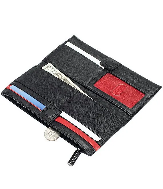 • 12 interior card slots, ID pocket, zip pocket, and 2 bill pockets