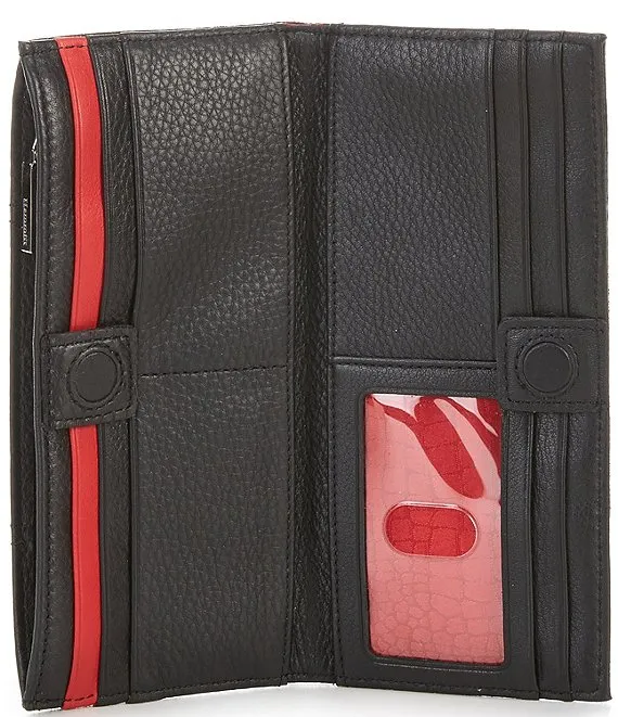 From Hammitt, the Gunmetal Hardware 110 North Checkbook Wallet features: