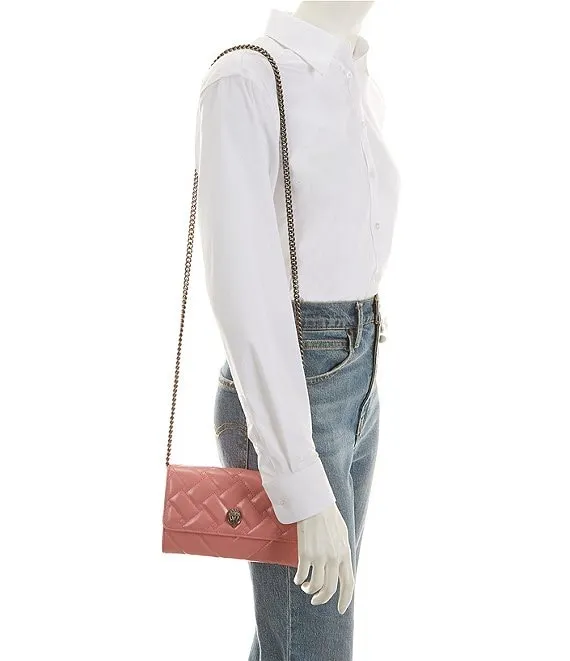 From Kurt Geiger London, the Kensington Pink Quilted Wallet On Chain Bag features: