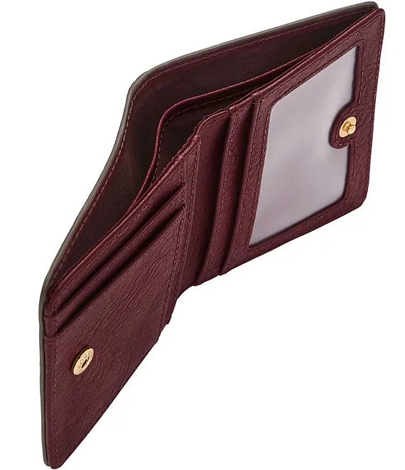 From Fossil, the Logan Crinkle Red Mahogany Small Bifold Wallet features: