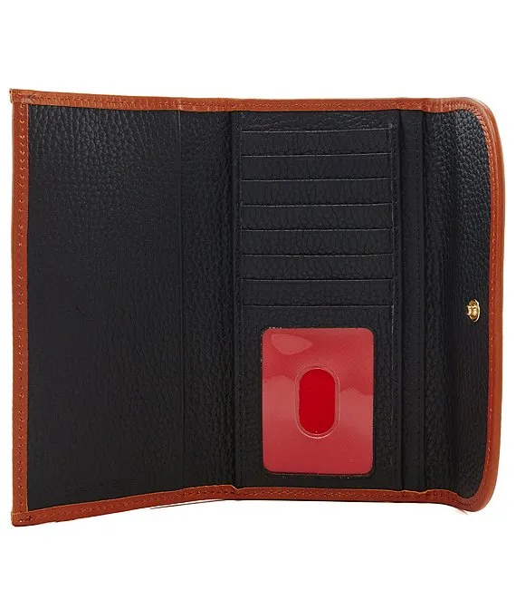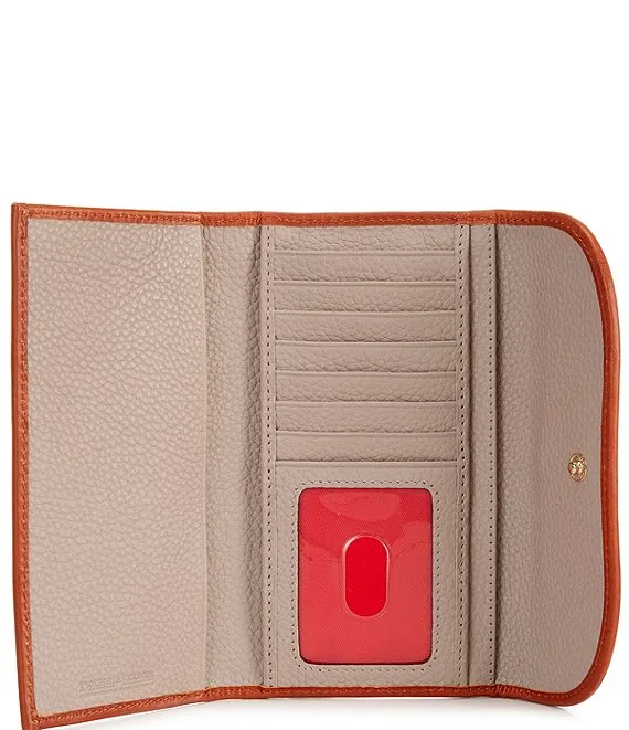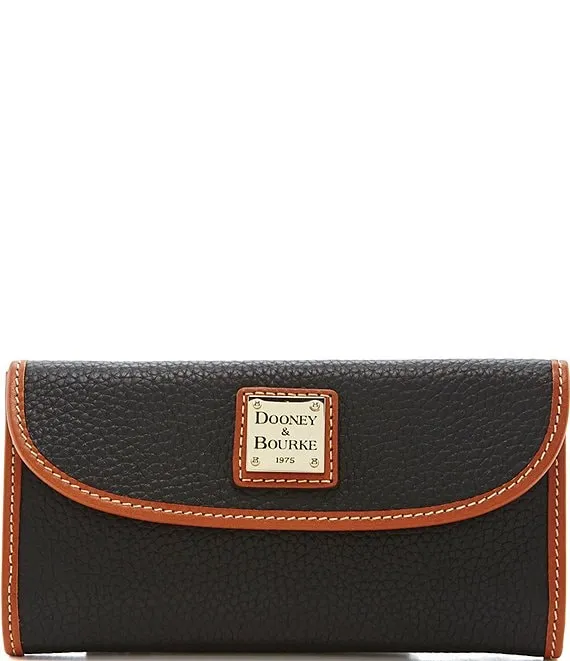 From Dooney & Bourke, the Pebble Continental Leather Clutch Wallet features: