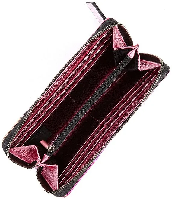 Pink Stripe Zip Around Metallic Leather Wallet